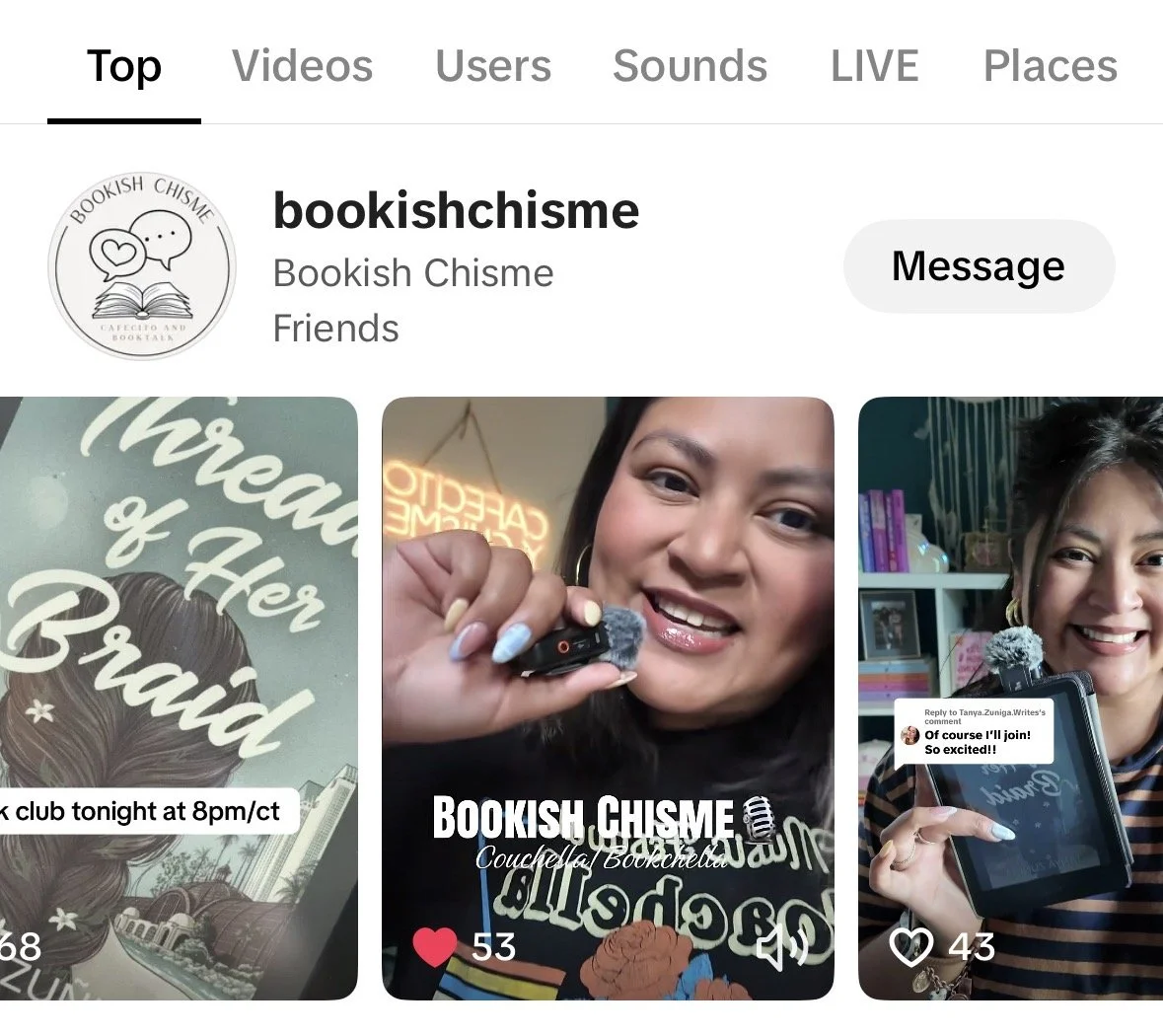 This month I’ve had the incredible honor of joining Bookish Chisme book club on their TikTok lives as they discuss Threads of Her Braid. If you’d like to join in on the discussion, the next live will be Thursday, April 23rd at 6pm pacific. This will be the last meeting featuring Threads of Her Braid, but they choose a different book every month and their discussions are always so much fun!